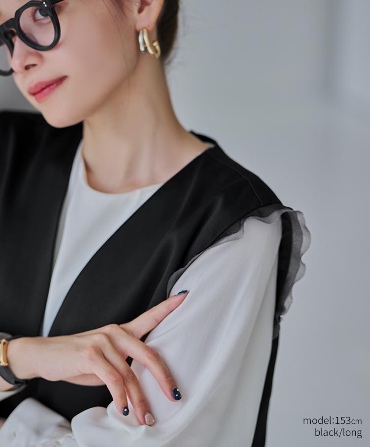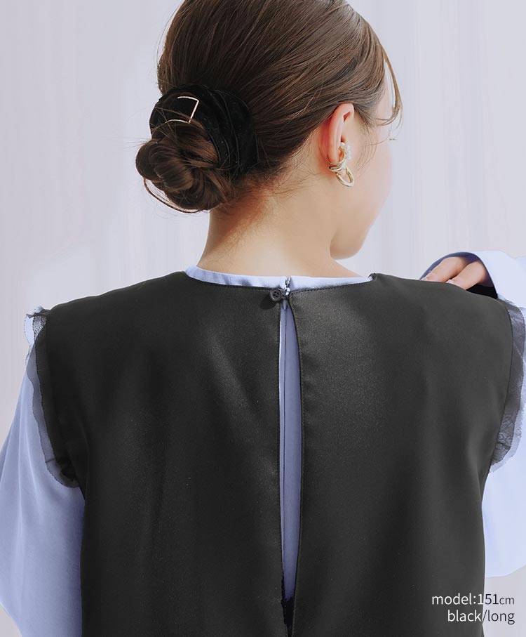 袖には2枚重ねのチュールをさりげなくあしらい、繊細さと奥行きをプラス。