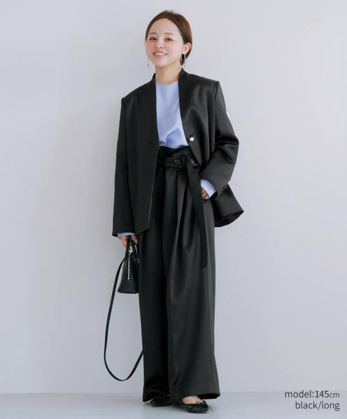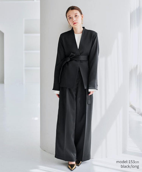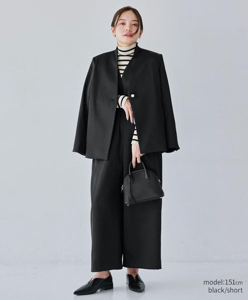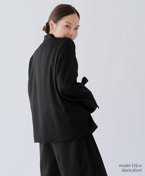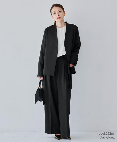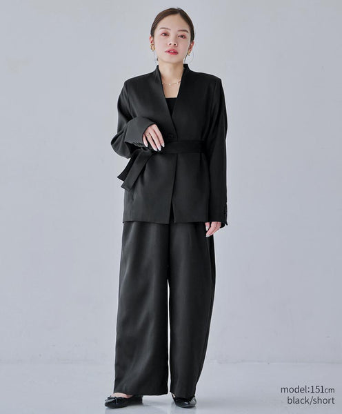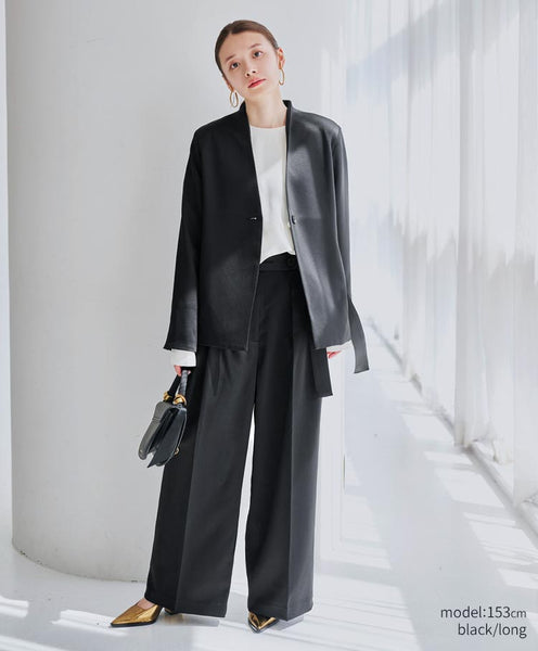 上品で優しい光沢感の美しいサテンジャケット。さらりと羽織るだけで、シティムード漂うスタイルが完成します。Doublecloth(二重織)ならではのふくらみとハリのある生地で、シルエットをきれいに見せながら、シワになりにくく快適な着心地を実現しました。パールボタンとノーマルボタンの2種類を簡単に付け替えられ、日常のコーディネートをスマートにアップデートしてくれます。袖丈はショートとロングの2パターン。さらに付属のベルトでシルエットを変えれば、1枚で幾通りもの着こなしが楽しめます。同素材シリーズとのセットアップはもちろん、デニムやシンプルなボトムと合わせた外しコーデもおすすめです。小柄さんのかわいさをそのままに、クールでエレガントなエッセンスをほんのひとさじ。いつもよりちょっぴり素敵な自分になれるサテンシリーズです。