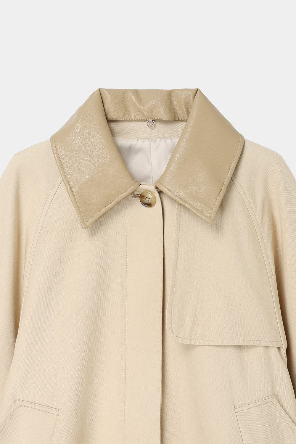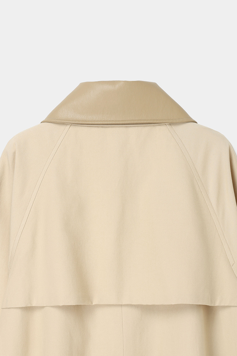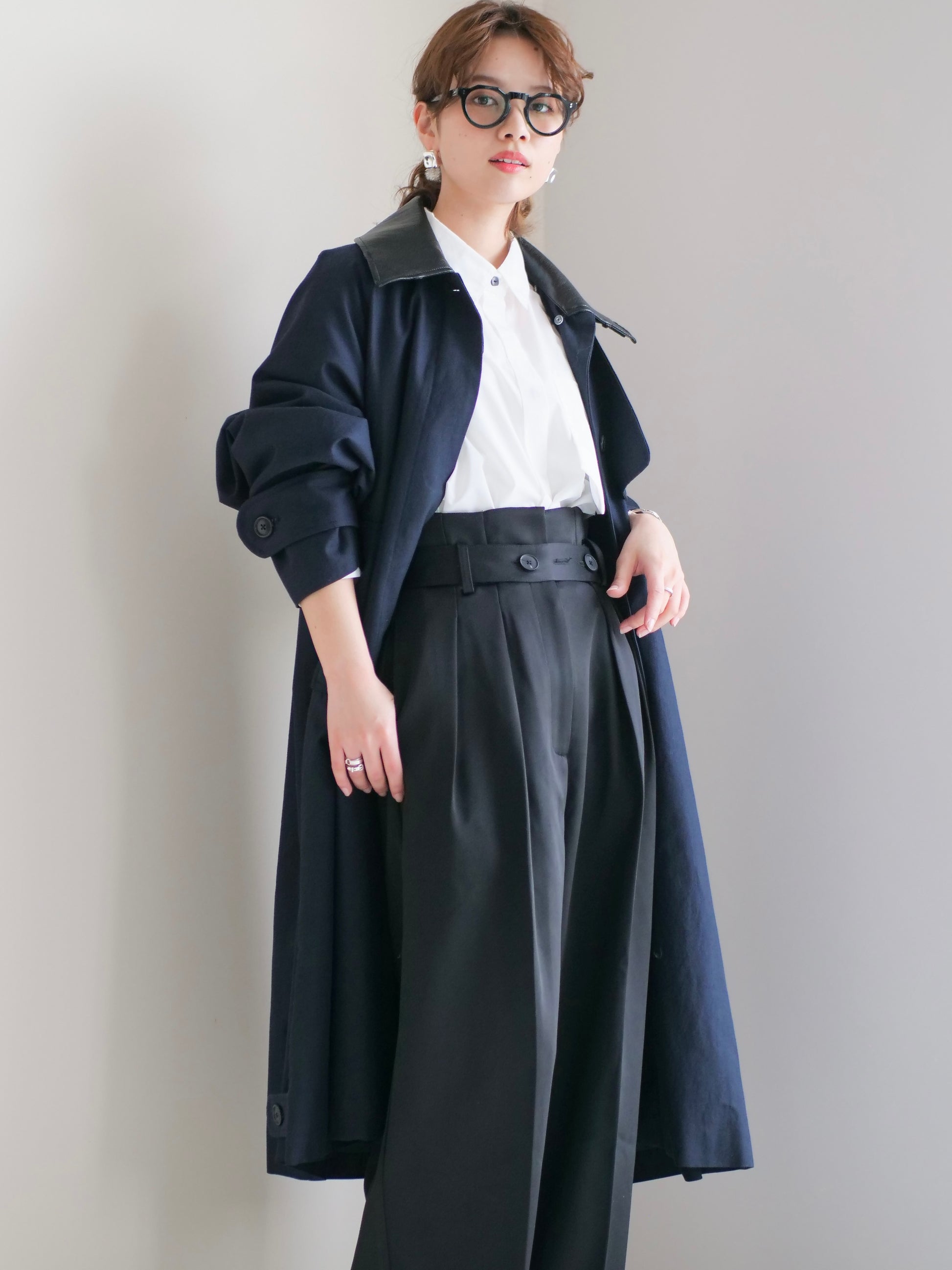 取り外し可能な別付衿は、ビーガンレザー素材へと変更し、スタイリングにさりげないモード感をプラスしました。