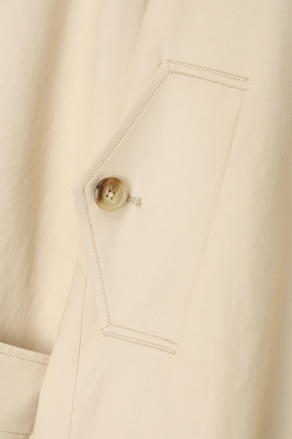 裾のタブを調節すれば、Aラインシルエットとコクーンシルエット、2通りのフォルムをお楽しみいただけます。