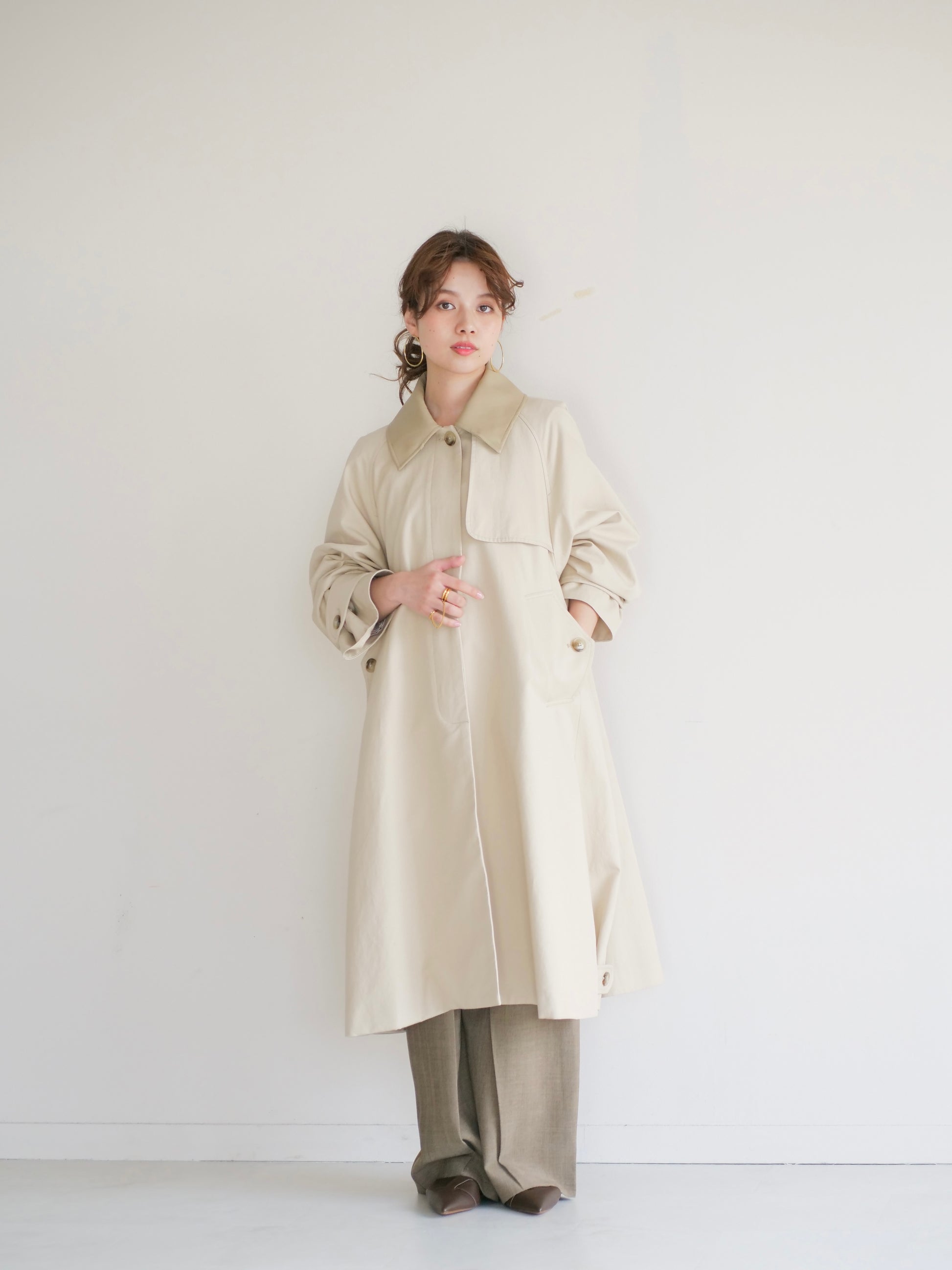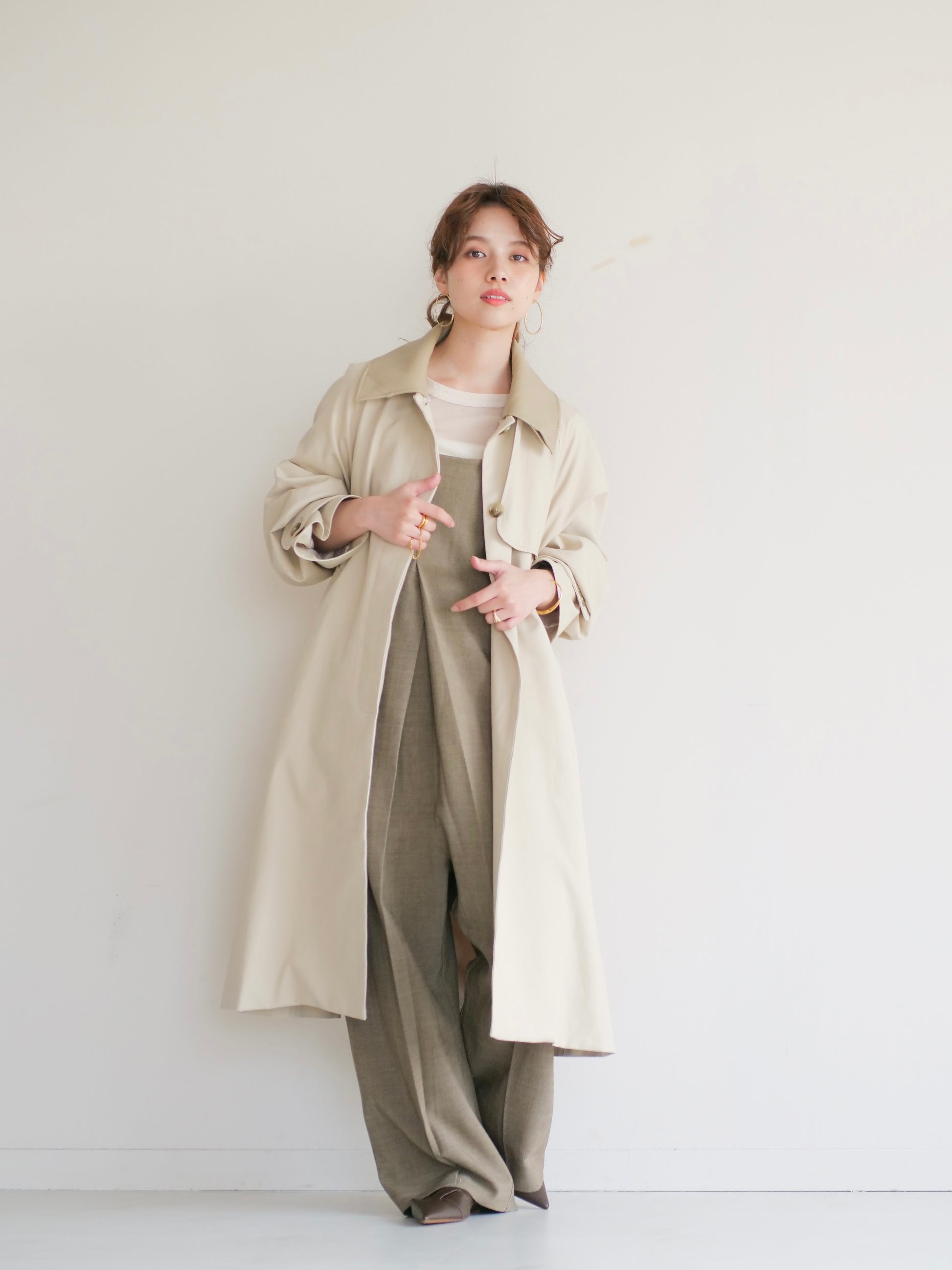 大きめの衿が印象的なUNLIENSのスプリングコートが、より洗練されたバランスにアップデート。